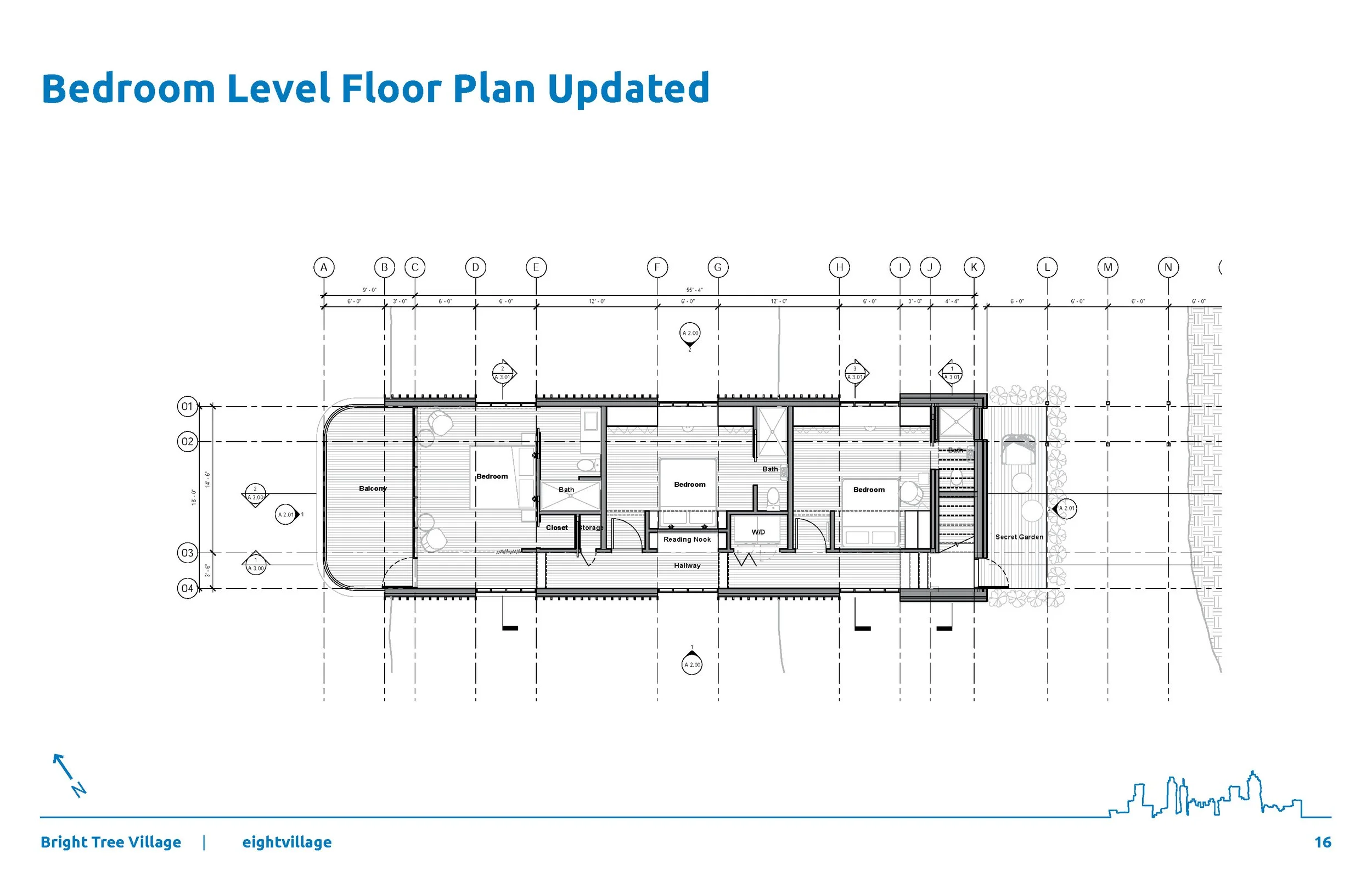 The common areas provide tools such as glass expo walls, library, printer, basic craft materials, a variety of work surfaces to support the collaborative process. Plant identification tags along the forest foot trails and an educational garden located on the premise further encourage individual exploration and self discovery. Along with the inherent inspiration of the surrounding nature, Bright Tree Village’s architecture strives to incorporate playful, whimsical, and unexpected moments such as secret doors, swings, and sky bridges to help awaken the creative inner child of guests. It also caters to sustainability enthusiasts by showcasing the passive design and sustainable building systems that it utilizes via educational plaques located throughout.