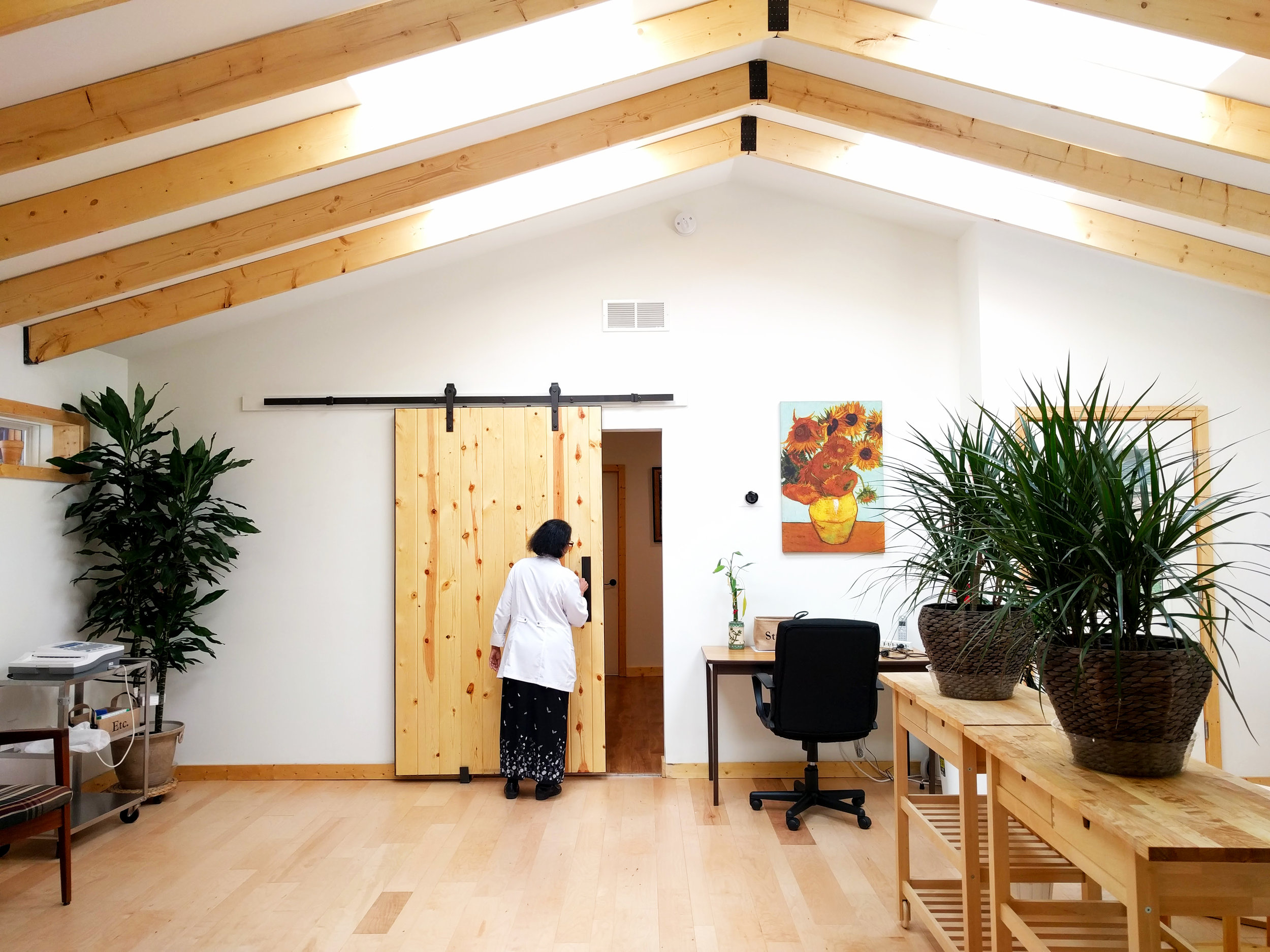 Lifestyle Center MD is a premier Integrative Medicine practice in the Atlanta area, providing a unique blend of personalized medicine that combines holistic methodology, lifestyle techniques, and conventional wisdom. The vision of the clinic is to achieve whole health and wellness in individuals and communities through better lifestyle practice. The design of the clinic's new home embodies these principles. Breathing new life into a 30-year old home-turned-office, the renovation prioritizes landscape and natural lighting. The new entryway encourages a healthy, garden walk through herbs and strawberries. Inside, deep light wells daylight the vaulted flex space where group consultations, yoga, meditation, therapies, and lectures take place.
